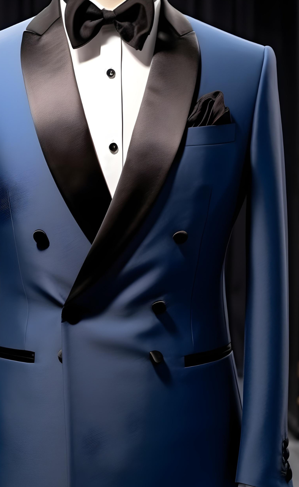 Experience the perfect blend of elegance and modernity with our Blue Double Breasted Tuxedo with Black Satin Lapels. This suit is ideal for both weddings and business events, designed to make a bold statement while exuding timeless sophistication. Crafted from high-quality fabric, this tuxedo ensures superior comfort and durability, making you look sharp and feel confident all day long.