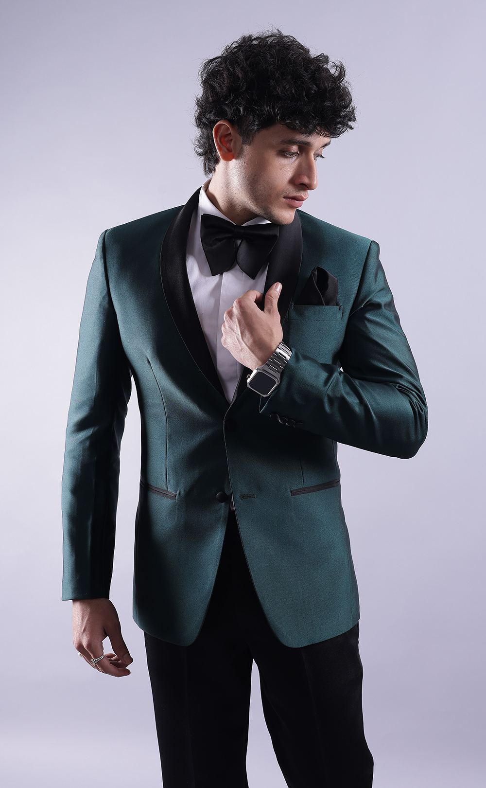 Elevate your formalwear collection with this men’s green tuxedo jacket paired with black pants, crafted from premium terry rayon fabric. The deep green jacket offers a modern, sophisticated appeal, while the classic black pants create a timeless, balanced look. Designed for comfort and style, this tuxedo is perfect for weddings, formal events, gala dinners, and upscale parties.