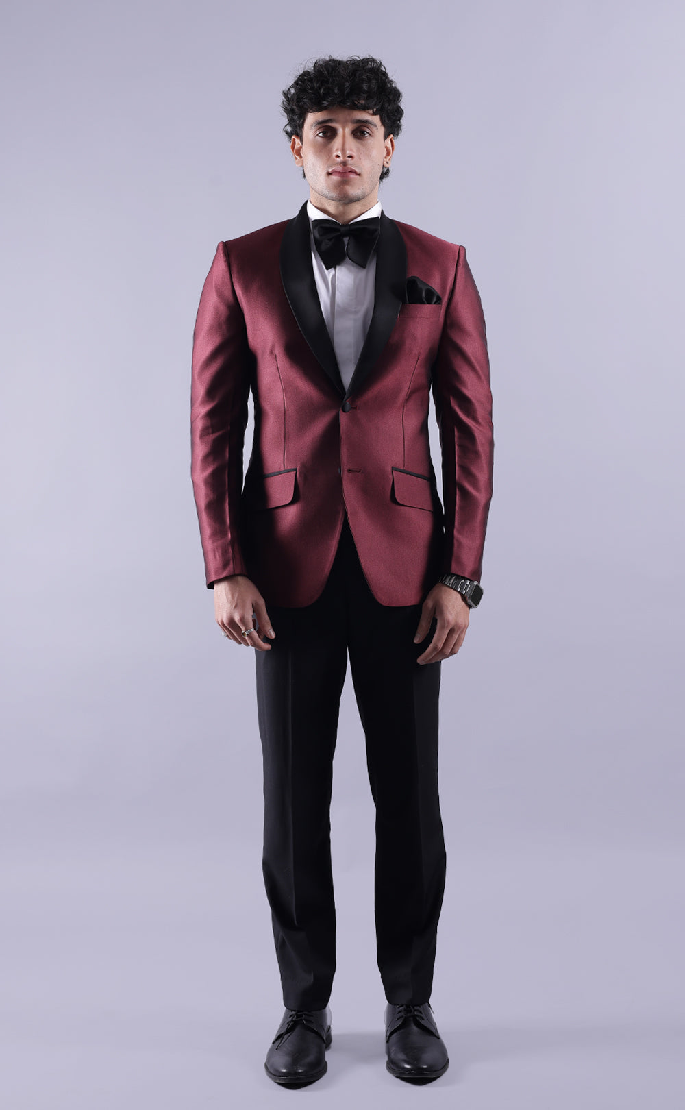 - Burgundy Tuxedo Jacket with Black Pant Combo