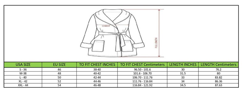 Smoking Jackets Sizing (INCH)